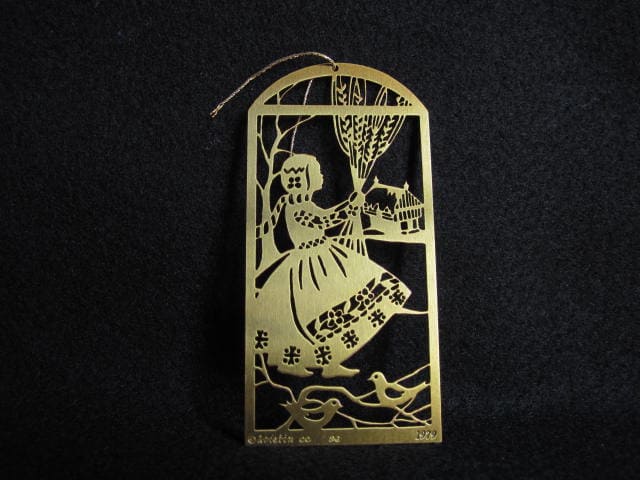 Kristin Kjorlaug was the artist name of my dear Norwegian grandmother. In 1884 her grandfather brought the name Kjorlaug from Norway to America. Kristin was a Norwegian name that she adored. Not only did she sign her artwork with this name, but she also named her brass art company The Kristin Company in 1972— a company where my grandfather, an engineer, chemically etched her artwork on brass sheets, then clipped and polished them to sell as ornaments. They ran this company together until 1987.